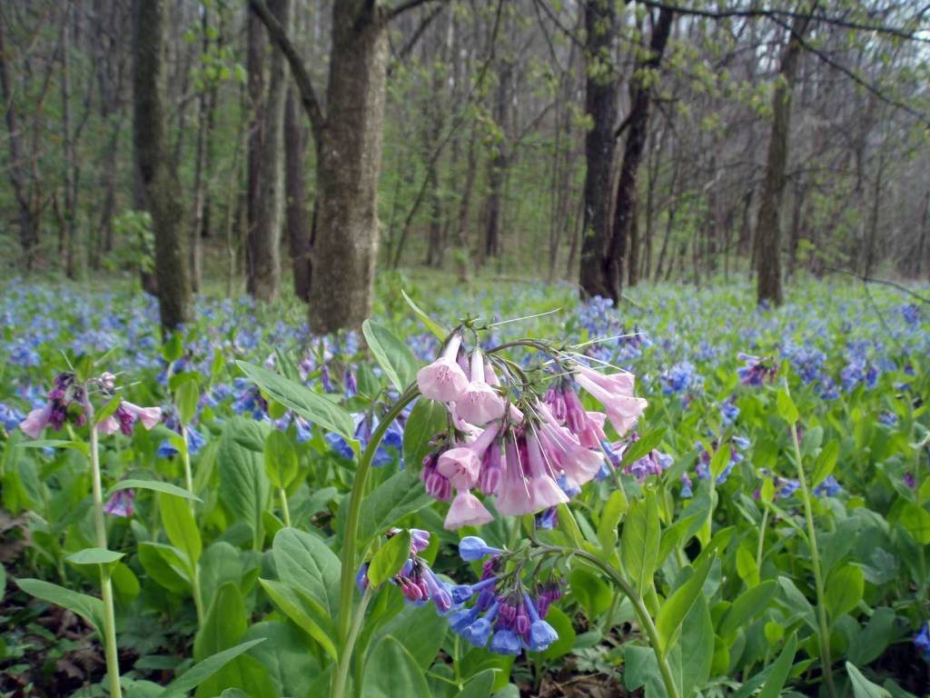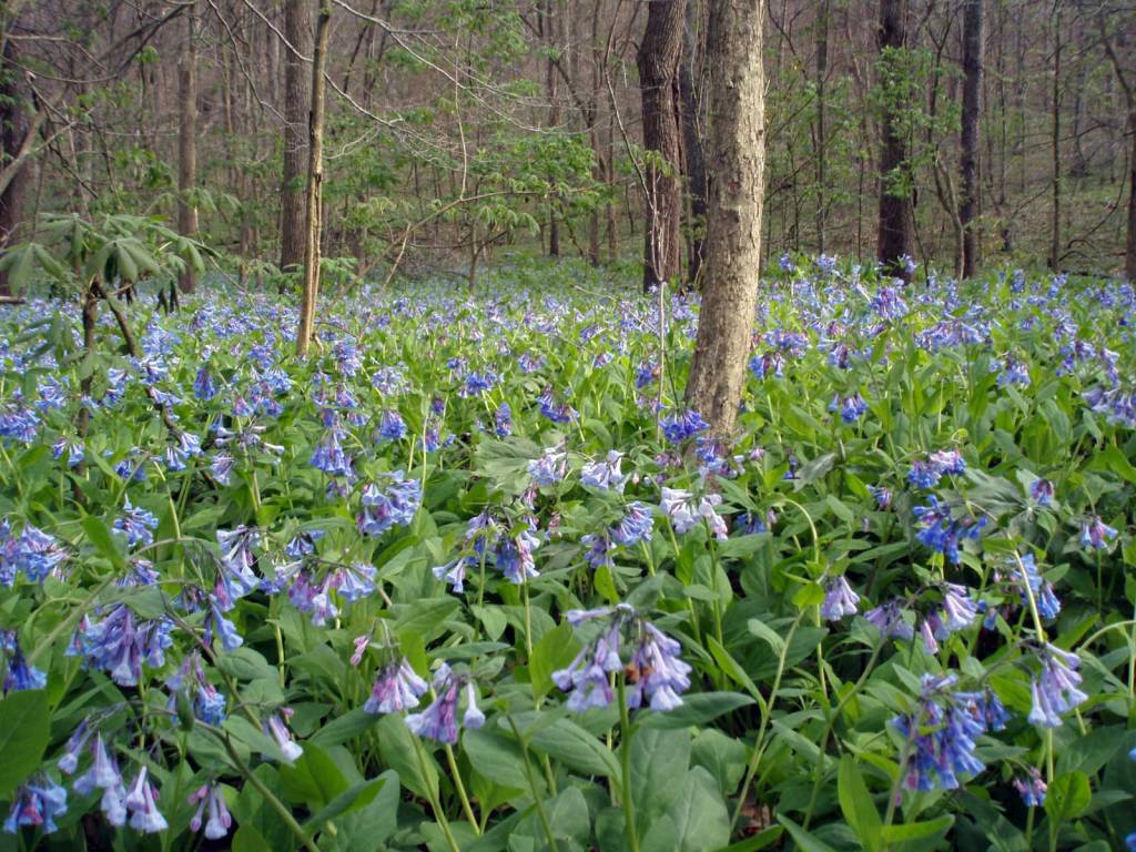 From here Brummett’s runs through 3 miles of scenic farm country before climbing to the ridge for another mile and a half of ridgetop riding, till it ends at SR 45. Last year at this time, Lake Monroe was near capacity, and the valley was flooded and filled with herons and ducks, rather than corn and soybeans. We crossed the creek and found the Valley of the Bluebells, what an amazing sight/site! We found a colony of these last year along Woodland Road, this year’s find was massively larger.