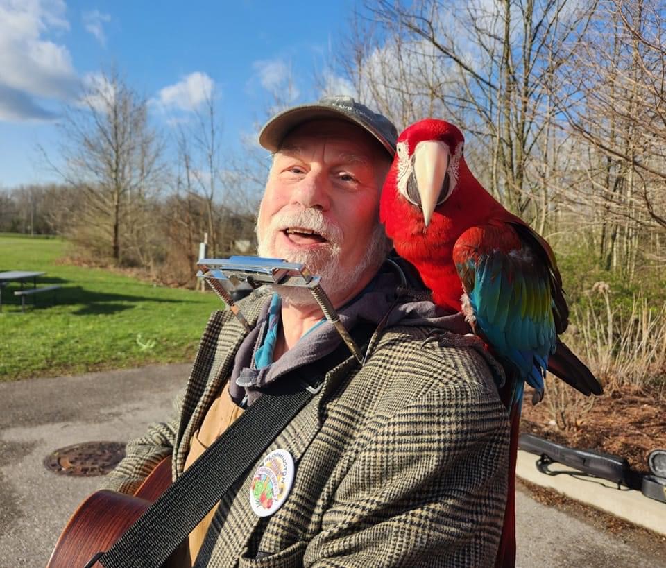 I started street singing in Cleveland as a folklore project while attending Cleveland State University, where I competed with the traffic and trains, then moved to playing at Coventry Village, where I had worked for years, but now on the street! When we moved to Coconut Grove, Florida, Eileen and I started playing at the local farmers’ market, banjo, harmonica & limberjack. We moved to Indiana in 1978, and started playing music at the Bloomington Farmers’ Market when it was in the parking lot at Waldron-Hill-Buskirk (aka 3rd St.) Park, then on the northside of the Square, the Old Library parking lot, and finally the new City Hall (Showers) parking lot. Here is a video of us playing, it is an early iPhone recording, but it shows the vibe at most of our shows!