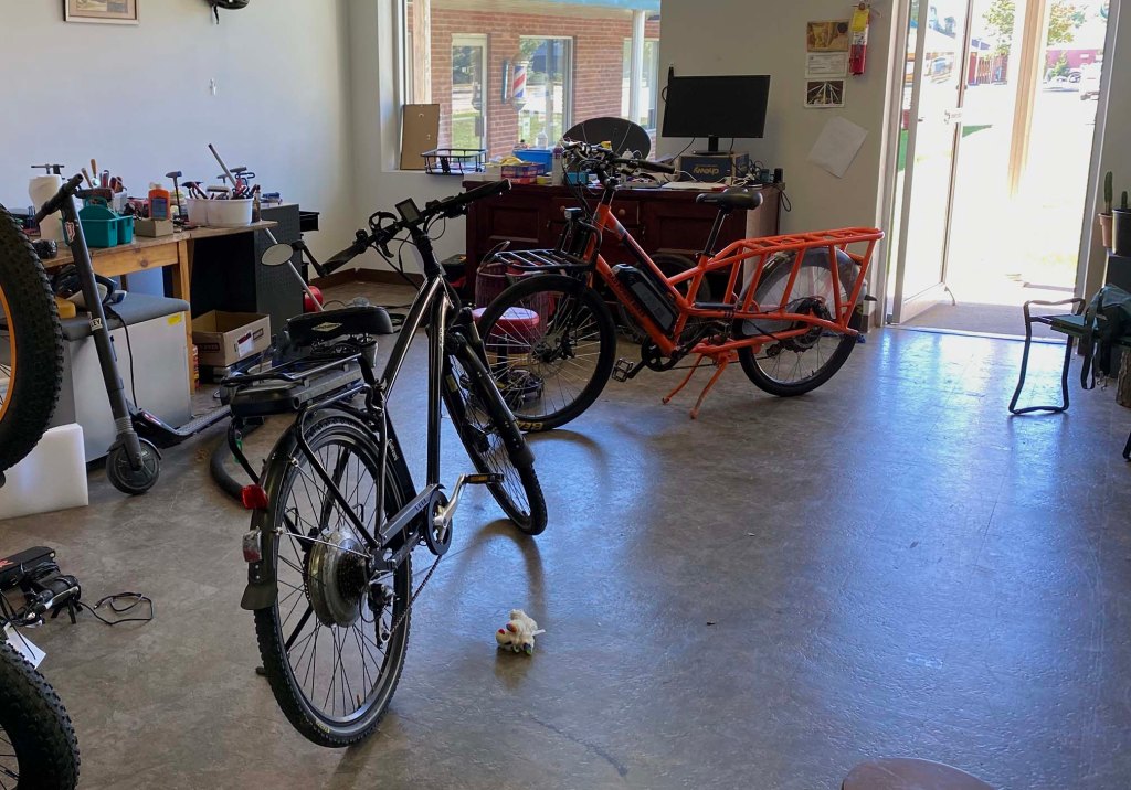 So after my double bypass operation, I was not in shape to resume my normal 4-5000 miles/year schedule, but there was no way I was going to stop biking, and I bought a used Trek cargo ebike, and rode it around town for a year or so before wearing out the battery. I searched the web and 4 years ago bought my RadWagon, which has been a great city bike for me. But it wears on my wrists and butt on longer trips, and so with Emmanuel’s expertise, we retrofitted the old Rans with a front hub motor and a large capacity battery. Now I can again ride all the great ridges and valleys Monroe county has to offer in comfort!