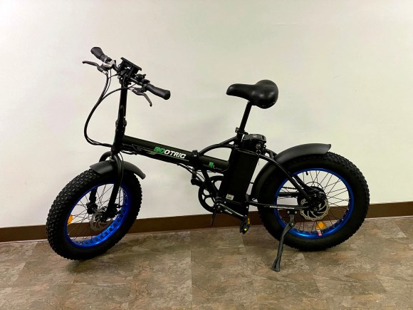 This fat tire folding bike is beefier than the Dolphin, and though Ecotric has not come up with a cutsie name for it, but they are selling fast. It has a 48 Volt/500 Watt motor and may be a bit more solid in its geometry when hitting the back forty, or hitting a Bloomington pothole or curb.