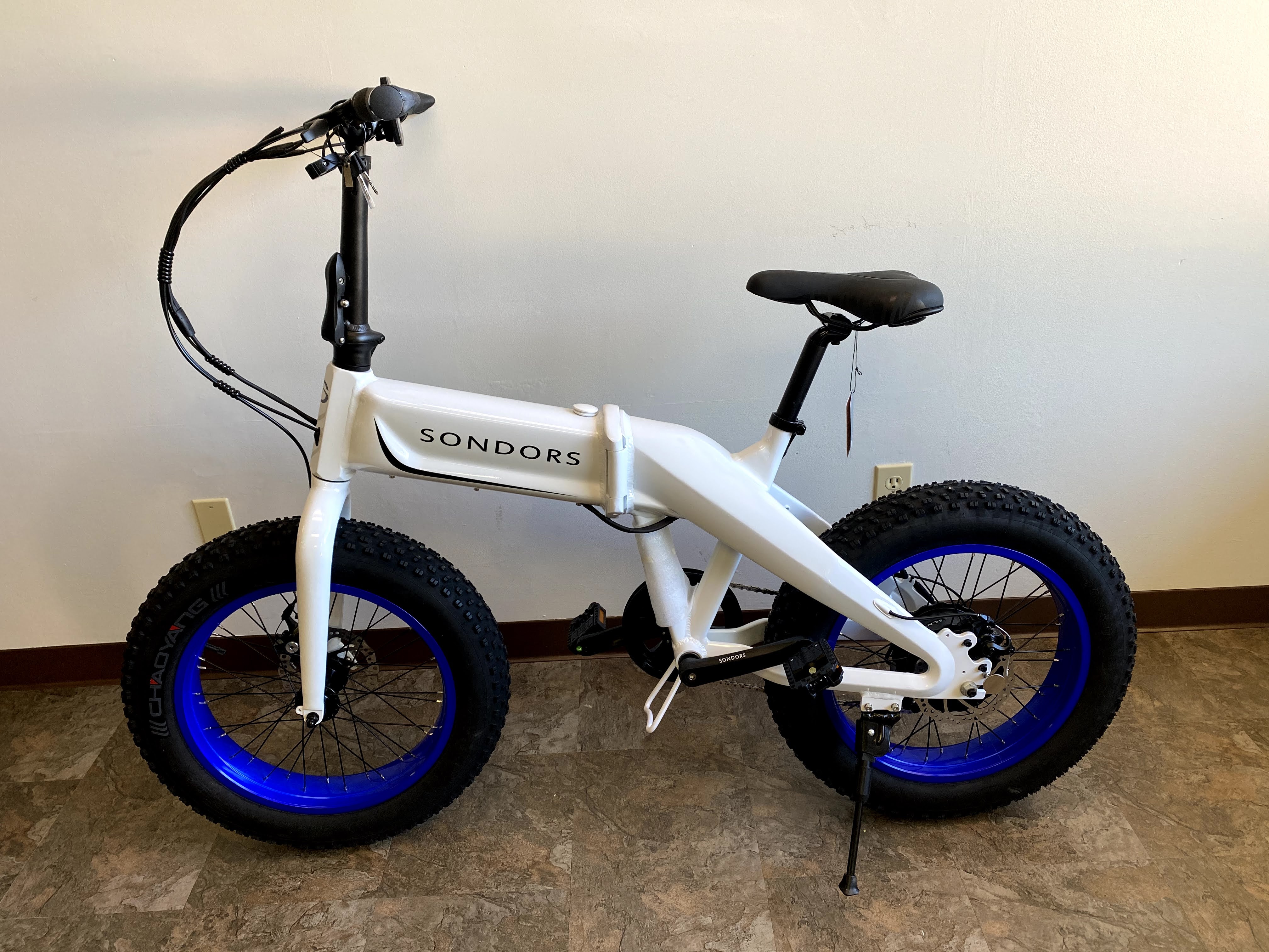 We are proud to offer SONDORS electric bikes! We are the only dealer/repair shop in our area, and currently have 3 models in stock, the SONDORS X, the Fold X and the Smart Step. All 3 are extremely sturdy, elegant and well built. With plenty of power on the SONDORS X and Fold X (48V/500W motors), they will conquer any hill in southern Indiana, while the fat tires will smooth out any bumps or pot holes with ease. The Smart Step is built to mount easily, and with 36 V/350W motor, it is sized perfectly for city use, or cruising our county roads in style. The SONDORS line is a bit more expensive that our Ecotrics, but we feel they are well worth the extra cash ($200-300).