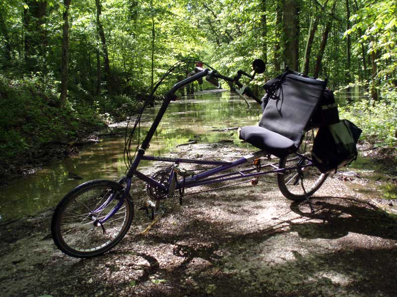So now with the use of our Zephyr E-bikes, we are back on track with longer rides! I rode my purple Rans recumbent (which we outfitted a 500Watt front wheel motor), while Jojo/Charlie rode my RadWagon cargo bike that I have been using the past few years.