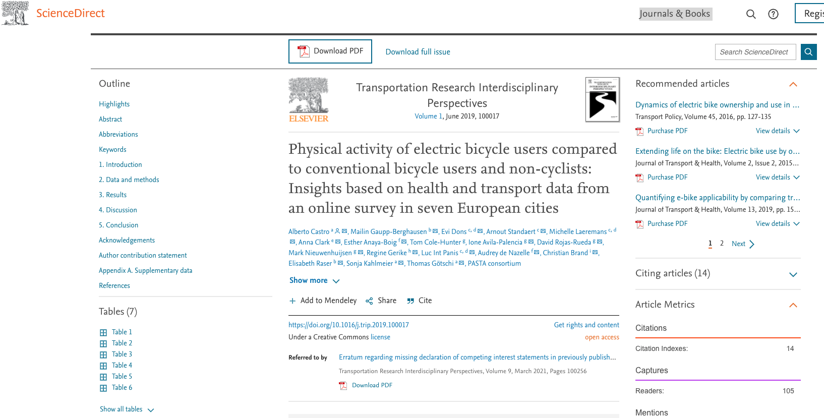 Physical activity gains from active travel are similar in e-bikers and cyclists.